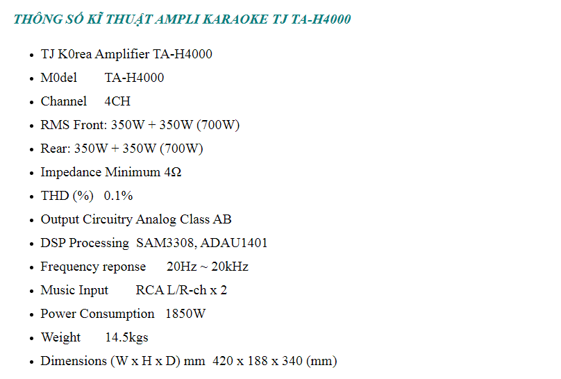 Ampli karaoke TJ TA-H4000 chất lượng chính hãng được nhập khẩu và phân phối chính thức tại Việt Nam