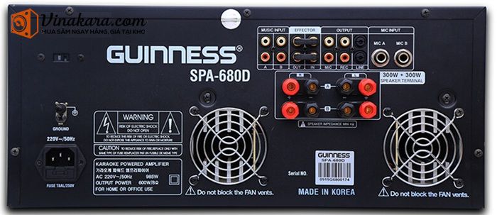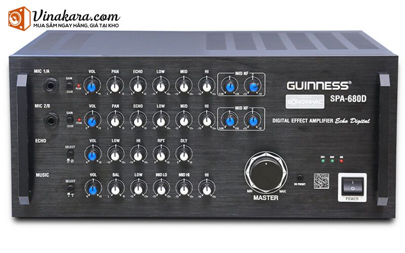 Amply Guinness SPA-680D cho khả năng khuếch đại tín hiệu cho âm thanh trong trẻo và đầy mạnh mẽ, thích hợp với không gian giải trí karaoke của bạn.