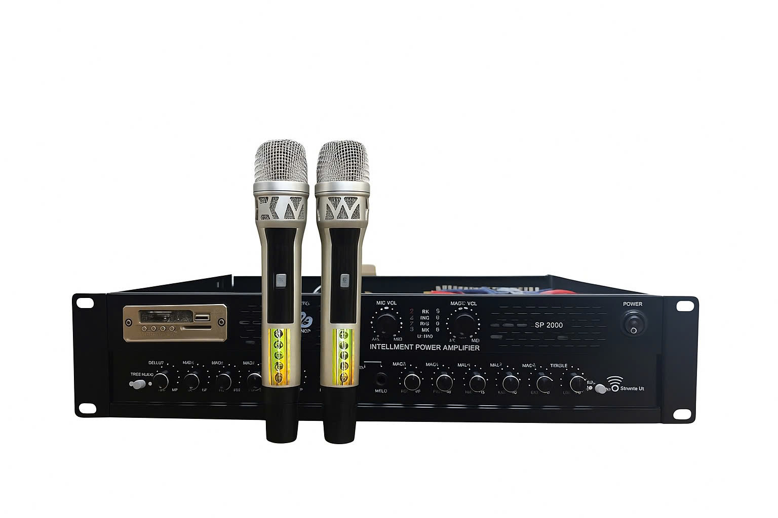 Bộ Amply SP-2600 kèm 2 micro không dây là lựa chọn hoàn hảo cho dàn karaoke gia đình, loa kéo, phòng hát mini. Sản phẩm cho chất âm sáng, echo mượt, micro hút âm tốt, dễ hát – rất phù hợp cho gia đình, sự kiện nhỏ hoặc kinh doanh karaoke.