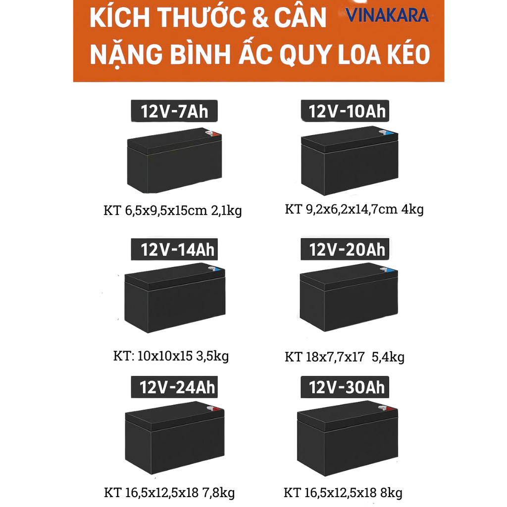 - Ắc quy 12V7Ah → phù hợp loa kéo mini, nhỏ gọn.