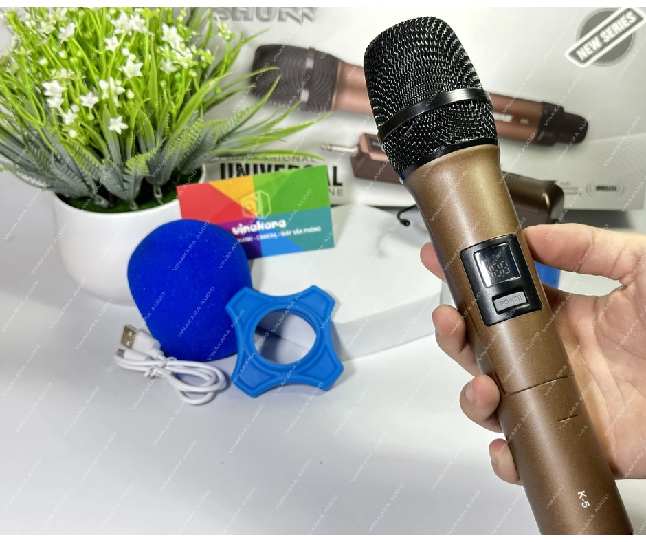Micro Shur K5 Dùng cho các loại đầu đặc biệt thích hợp cho các loại loa kéo di động do không cần cắm nguồn điện trực tiếp mà xài pin sạc Sử dụng tần số nhảy Âm thanh xuất hay, ấm,