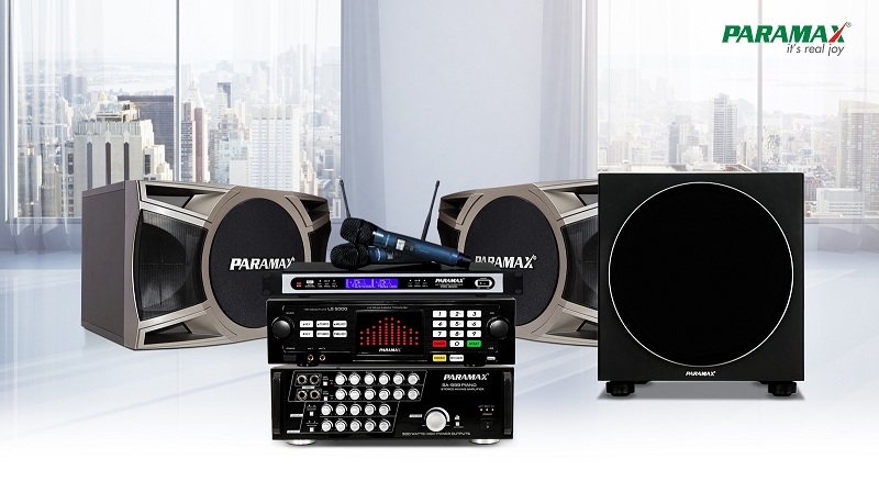 Bộ dàn karaoke PARAMAX gồm: đầu karaoke LS-5000, ampli SA-999 Piano 2018, loa D-1000, loa SUB-1000 (2018) và micro không dây PRO-8000.