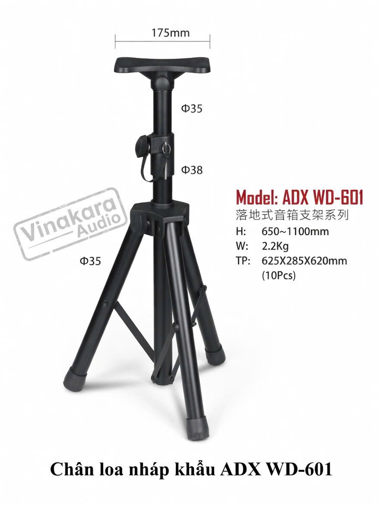 Chân loa ADX WD-601 là một giải pháp hoàn hảo cho việc tối ưu hóa trải nghiệm nghe nhạc của bạn và mang lại tính tiện lợi trong việc sử dụng và bảo quản loa mini của bạn.