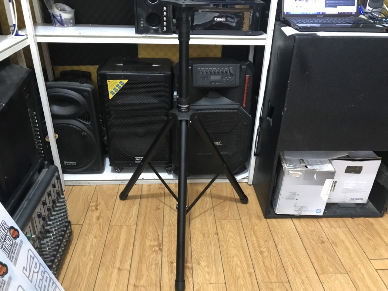 - Chiều cao 2 mét cho bạn thoải mái nâng lên hạ xuống, đế có 3 chân giúp giữ vững loa, có thể cắm đồng thời các loại loa chuyên dụng hiện nay