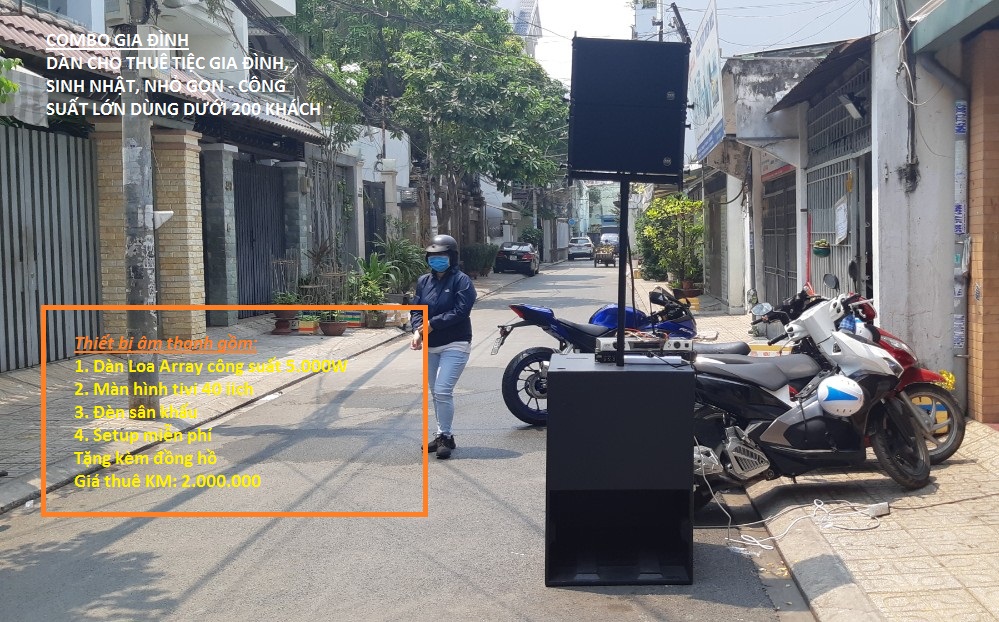 Đồng thời cơ sở cũng nhận hỗ trợ âm thanh ánh sáng combo cho từng gia đình. Như việc thực hiện tổ chức tiệc gia đình với số lượng khách dưới 200 khách. Trong đó combo vô cùng hấp dẫn bao gồm: