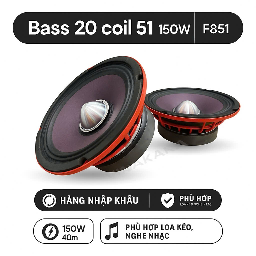 Coil: Có coil đường kính 51mm, đây là phần cốt lõi của loa bass và quan trọng cho việc tạo ra âm thanh.