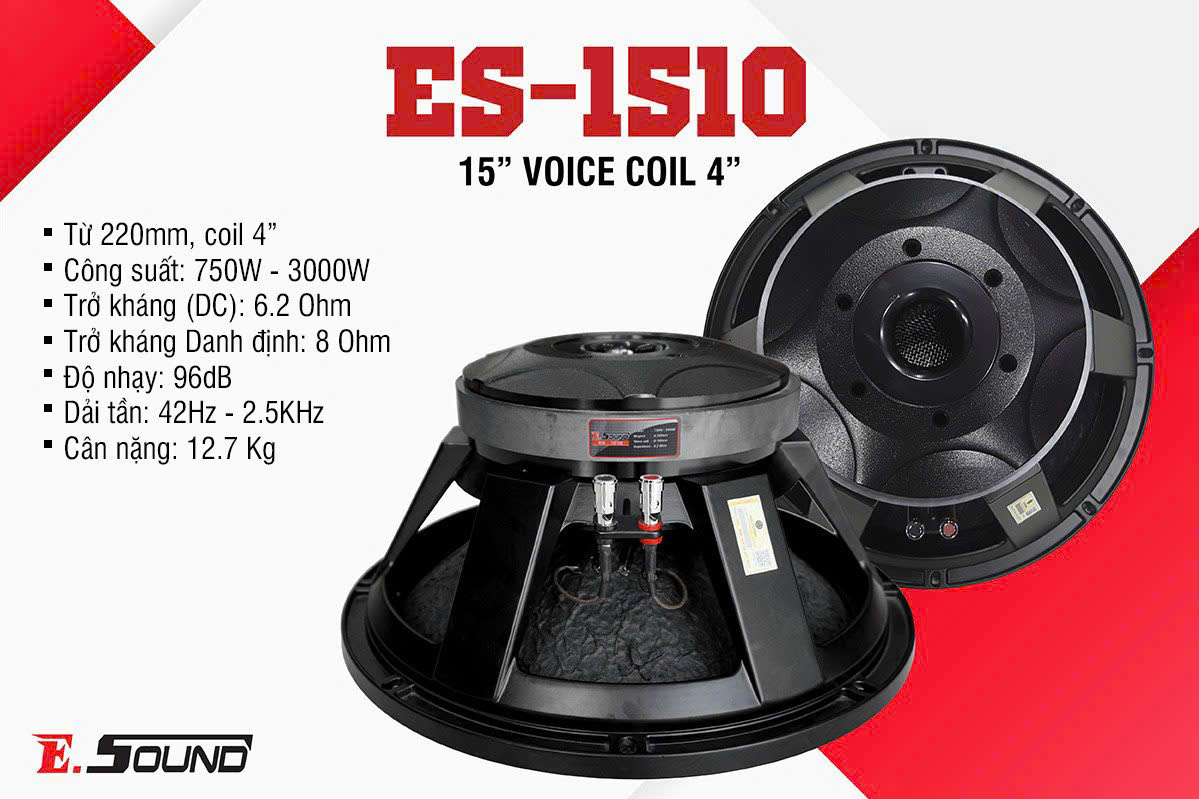 Củ loa bass rời ESOUND 4 tấc ES-1510 là sản phẩm chất lượng cao được thiết kế để đáp ứng nhu cầu âm thanh mạnh mẽ và chính xác trong các hệ thống âm thanh chuyên nghiệp. Với những đặc tính kỹ thuật nổi bật, sản phẩm này là lựa chọn lý tưởng cho dàn âm thanh karaoke, sân khấu, và các sự kiện âm nhạc ngoài trời.