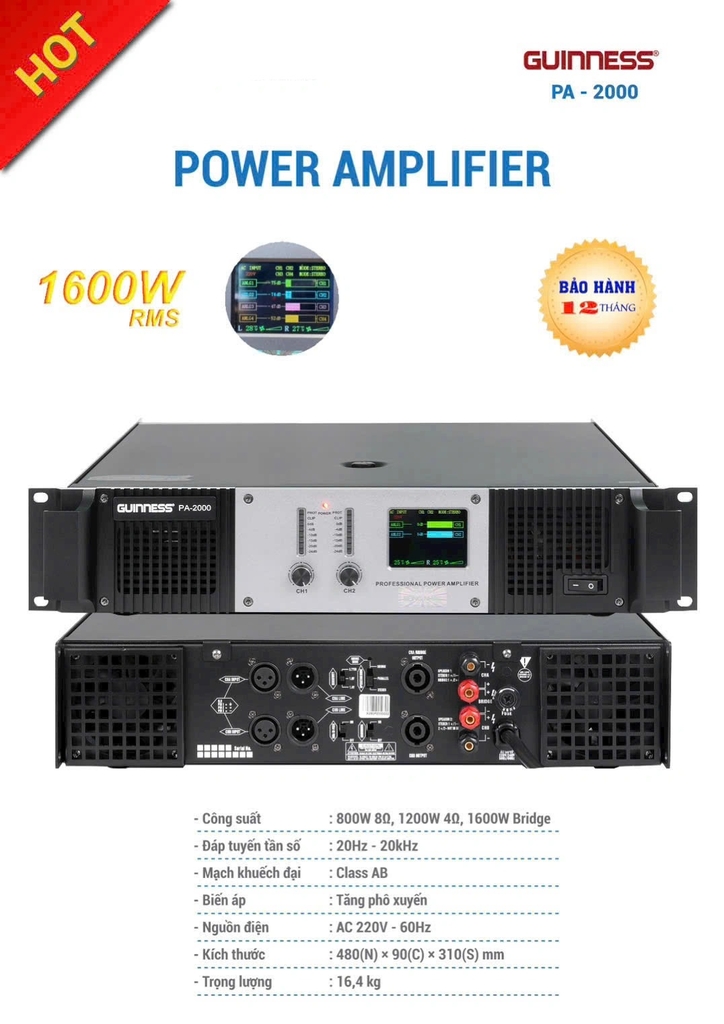 - Với kích thước nhỏ gọn như vậy, chiếc Power GUINNESS PA-2000 này sẽ không chiếm quá nhiều diện tích không gian, càng không tạo cảm giác quá nặng nề, chật chội. Điều này phù hợp với những không gian từ phòng khách gia đình đền nơi sang trọng như phòng karaoke VIP.