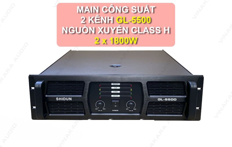 Cục đẩy main công suất Shidun GL-5500, 2 kênh, nguồn xuyến H, 2x1800W: Đánh giá, thông số kỹ thuật và tính năng