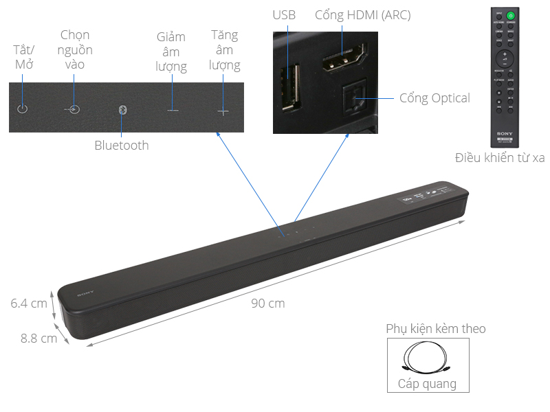 Thông số kỹ thuật chi tiết Loa thanh soundbar Sony 2.0 HT-S100F 120W