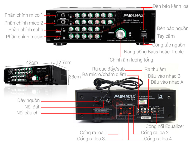 - Phối ghép dựa trên nguyên lý âm thanh tổng công suất loa nhỏ hơn hoặc bằng công suất amply hoặc cục đẩy..