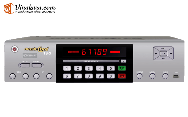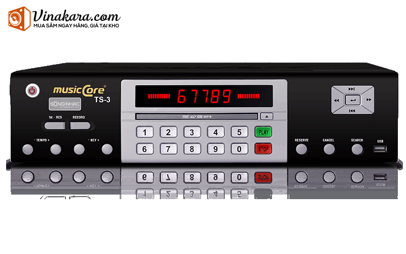 Đầu Karaoke Musiccore TS-3 với điểm nhấn hiện đại và đẳng cấp với thiết kế cứng cáp, đường nét sắc sảo cùng lớp sơn phủ màu chống trầy. Hệ thống các nút điều khiển được sắp xếp hợp lý, cân đối cùng hiệu ứng nền LED phía dưới giúp người dùng dễ dàng điều chỉnh ngay cả khi thiếu ánh sáng hoặc không có remote.