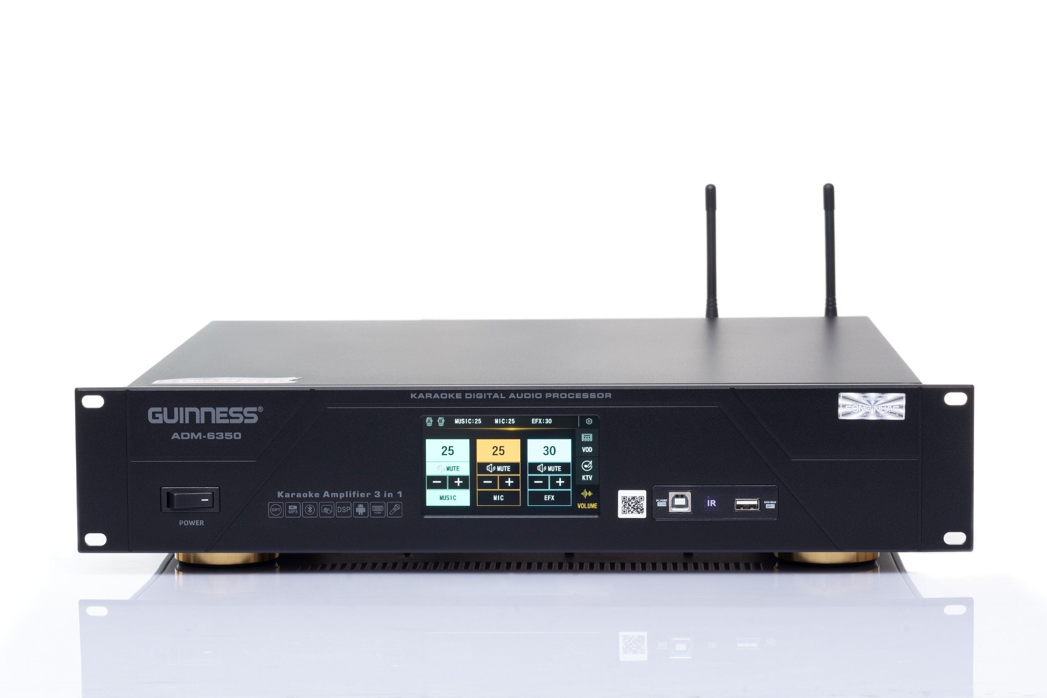 Power GUINNESS 3in1 ADM-6350 - Siêu phẩm mới hiện đại nhất - sở hữu tính năng của cục đẩy công suất, vang số và micro không dây, mang đến sự gọn nhẹ, tiện lợi, cho khả năng xử lý âm thanh chuyên nghiệp, chi tiết với công nghệ Digital, có chế độ lưu nhạc và cài đặt cấu hình tiện lợi,… chắc chắn sẽ mang đến cho người dùng những trải nghiệm vô cùng thú vị. Dưới đây là một số đặc điểm nổi bật mà Power GUINNESS 3in1 ADM-6350 sở hữu: