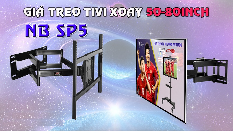 - Giá treo tivi xoay NB SP5 nhập khẩu chính hãng, đạt tiêu chuẩn quốc tế, chuyên lắp cho các dòng tivi màn hình lớn từ 50 tới 100inch, chất liệu thép, sơn tĩnh điện bền bỉ với thời gian, chịu tải trọng 90kg, đảm bảo độ an toàn cho hầu hết các tivi kích cỡ lớn hiện nay