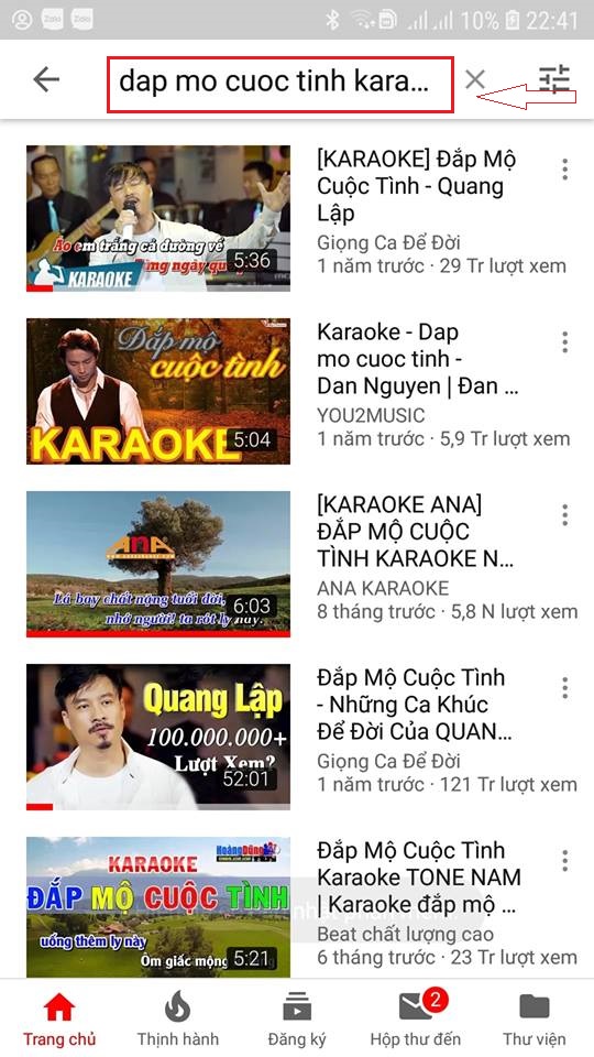 Gõ tìm kiếm trên Youtube