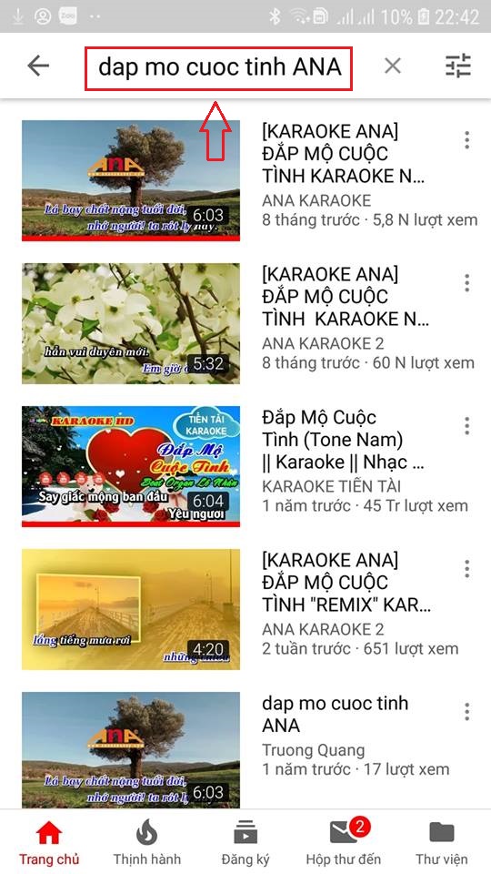 - Vào Youtube và nhập tên bài hát + Karaoke hoặc bài hát + ANA (nếu bạn muốn hát trên nguồn nhạc karaoke của hãng ANA hay nhất) để hát.