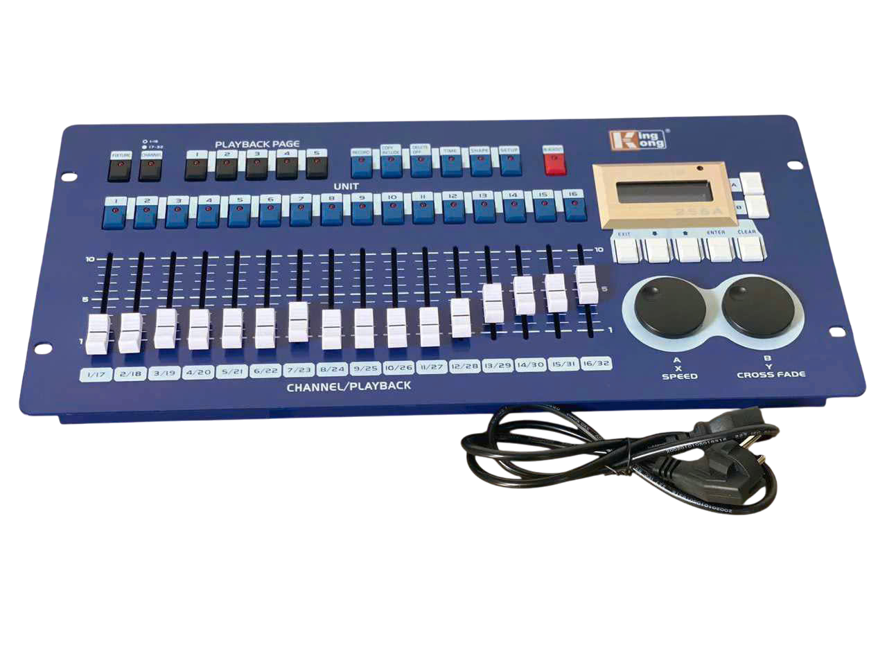 Bộ điều khiển KK256 DMX có thể điều khiển đồng thời 16 thiết bị. Nó được tích hợp các hiệu ứng hình dạng sẵn có như vòng tròn pan/tilt, cầu vồng RGB và nhiều kiểu đuổi bắt khác nhau, v.v.; 16 kiểu đuổi bắt và 10 hình dạng sẵn có có thể được xuất ra đồng thời; Các thanh trượt có thể được sử dụng để xuất các kiểu đuổi bắt và điều chỉnh cường độ của các kênh làm mờ trong các kiểu đuổi bắt.