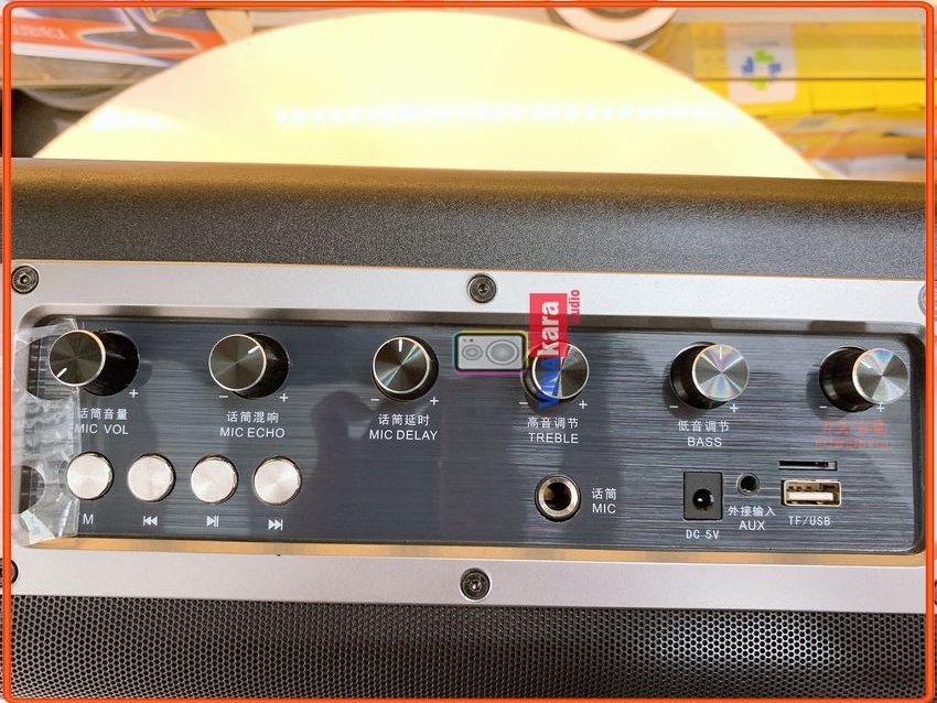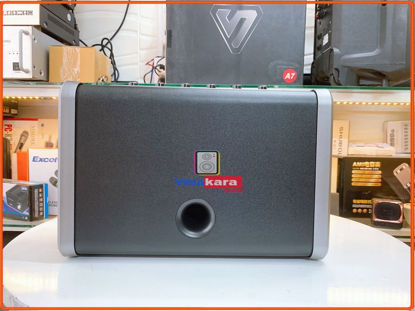 Đi kèm với loa là micro không dây tích hợp, khả năng hút âm và bắt sóng tốt, Micro xài pin AA tiện lợi và phổ biến. Và khi hát chúng ta nên chú ý đừng hướng đầu micro vào bass loa dễ gây hú rít..
