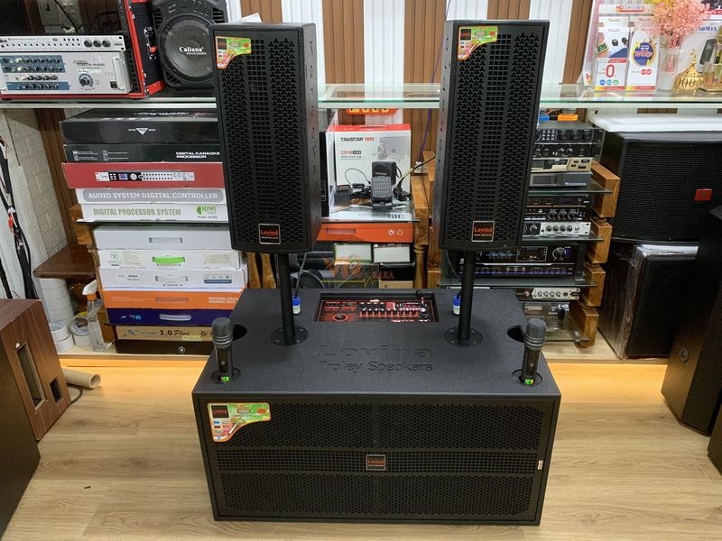 Phần loa line : Sử dung 04 loa Mid 14cm, củ từ 100, 02 loa trep từ 120 , có phân tầng chuyên dụng .
