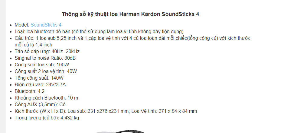 Loa Harman Kardon SoundSticks 4 có công suất 140W chia đều cho 2 bên tạo thành dàn âm thanh 2.1