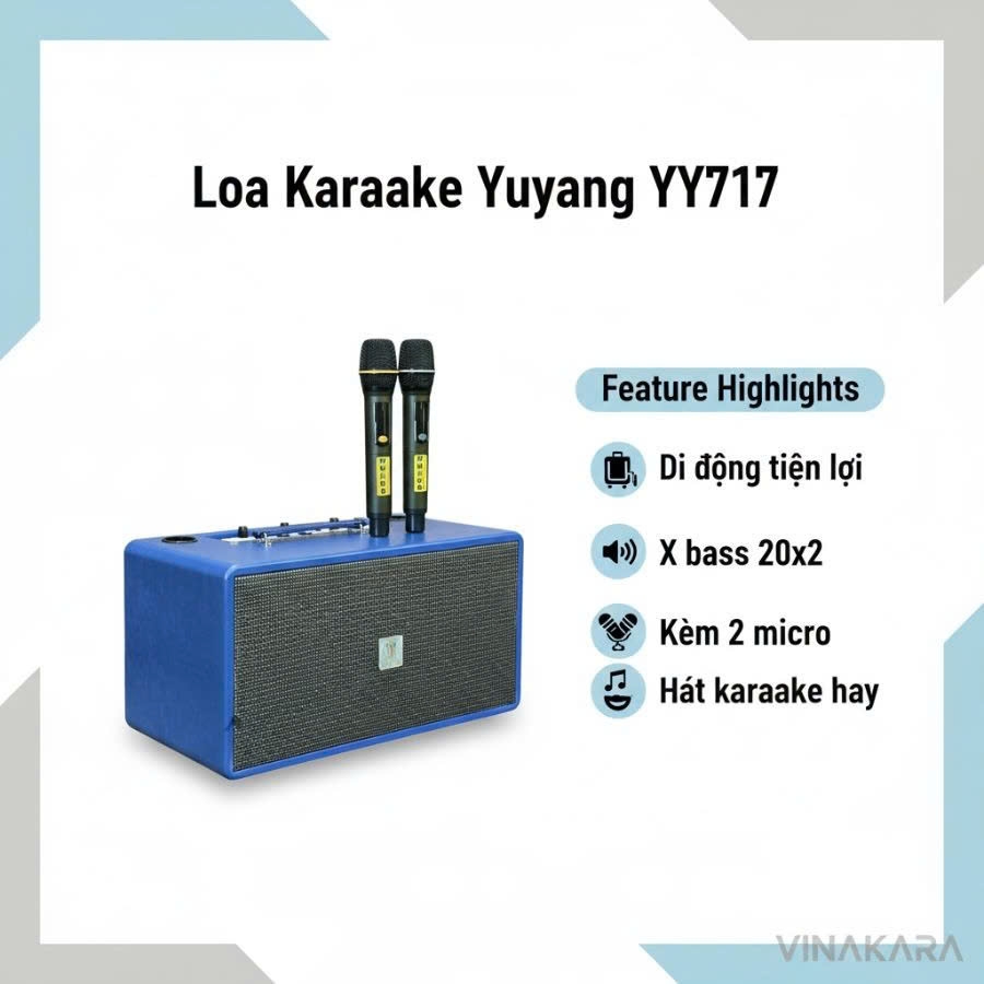 Bên cạnh loa chính, YY717 còn đi kèm hai micro chất lượng cao với độ bắt âm nhạy, cho phép điều chỉnh độ bắt âm và tần số. Điều này giúp bạn có thể thỏa sức thể hiện tài năng karaoke mà không cần lo lắng về chất lượng âm thanh.