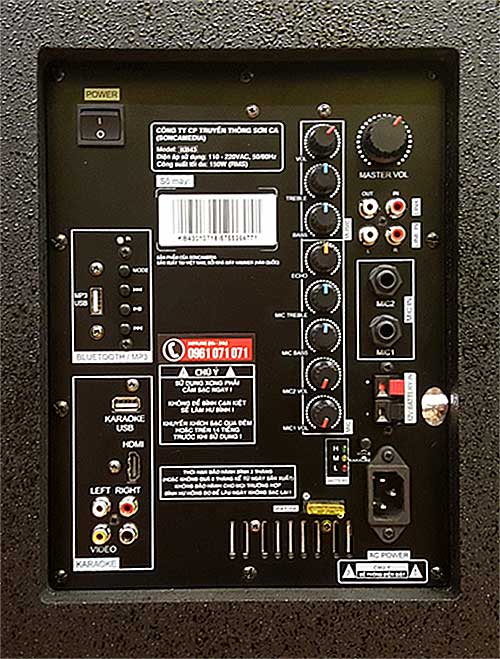 -Các cổng kết nối: karaoke USB, MP3 USB, HDMI (V1.3 - 1080P), Stereo Audio L/R, video karaoke