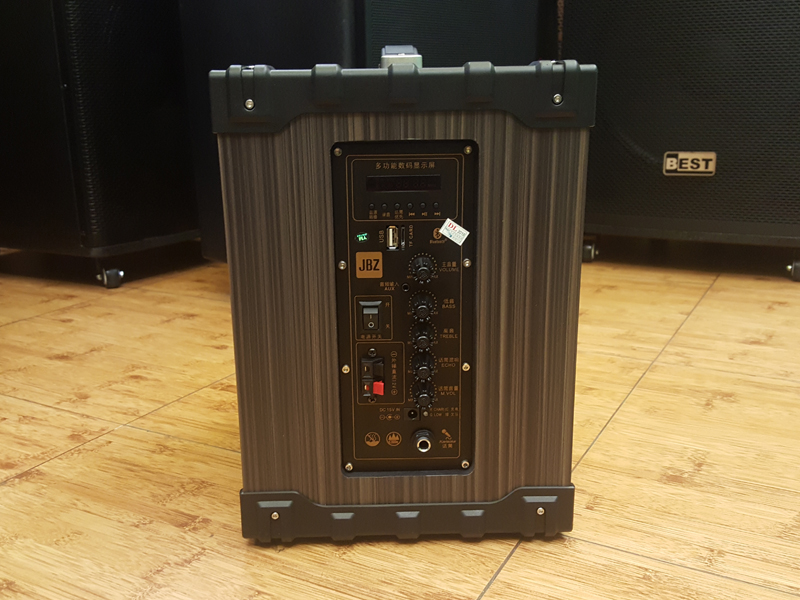 Loa thùng JBZ NE-106 sử dụng nguồn sạc 220V, khả năng kết nối bình acquy 12V, có tay xách ở phía trên loa nên có thể dễ dàng di chuyển di đi bất cứ đâu, khả năng kết nối Bluetooth trong tầm 10 mét đổ lại nếu không có vật cản