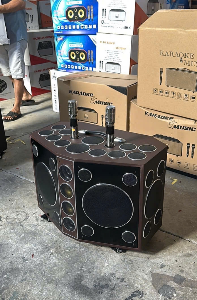Thùng loa được chế tác từ gỗ bọc da cao cấp, tôn lên vẻ sang trọng và bền bỉ. Cặp micro UHF chống hú kèm theo cho chất giọng ca trong trẻo, không nhiễu sóng, rất thích hợp cho karaoke, sân khấu mini, sự kiện, dã ngoại hoặc tiệc ngoài trời.