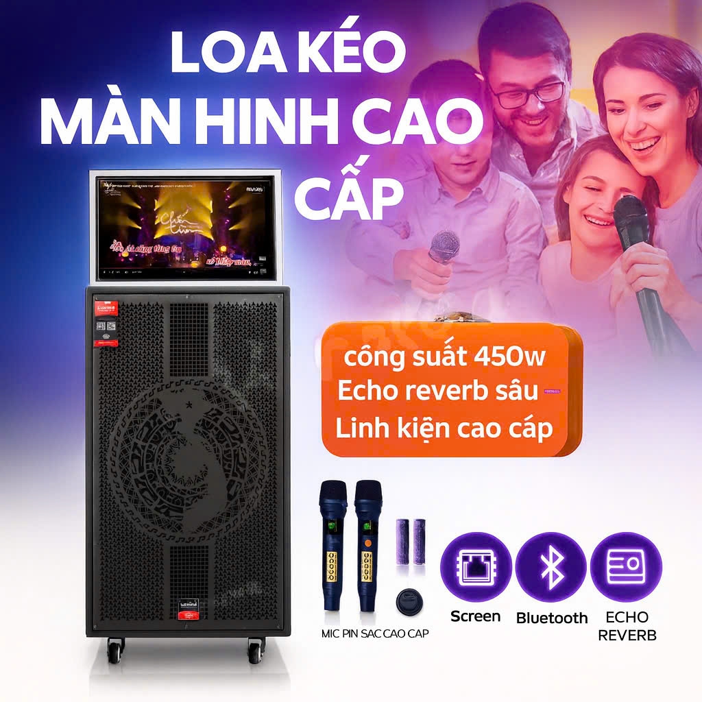 Loa được trang bị màn hình cảm ứng Android 20 inch cho phép truy cập trực tiếp YouTube, Zing MP3, Spotify... cực kỳ tiện lợi. Công suất 850W cùng bass 40cm mang đến âm trầm sâu, chắc và lan tỏa mạnh mẽ. Hệ thống 2 loa mid 16cm + treble đôi 350 giúp giọng hát trong trẻo, chi tiết, thể hiện hoàn hảo mọi thể loại nhạc.