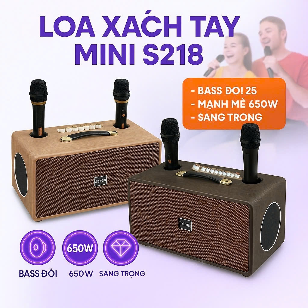 SOUNDBOX S218 là mẫu loa kéo di động thế hệ mới, được thiết kế sang trọng với chất liệu gỗ bọc da cao cấp, mang đến vẻ đẹp tinh tế và độ bền vượt trội. Với công suất mạnh mẽ 650W, loa dễ dàng đáp ứng mọi nhu cầu từ nghe nhạc, hát karaoke đến sử dụng cho sự kiện, ngoài trời.