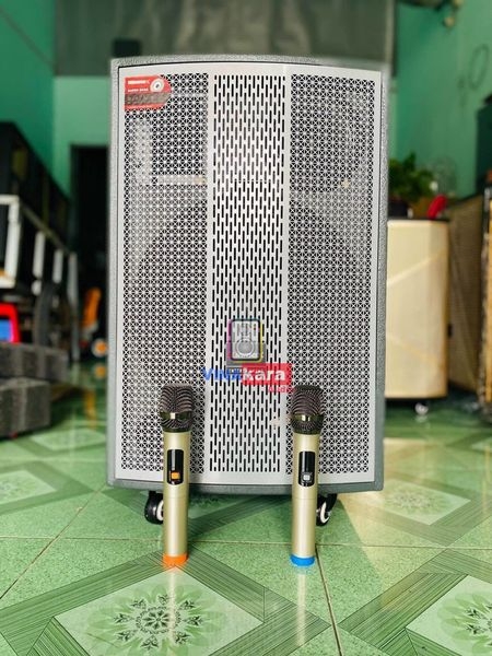 Đi kèm với loa là micro không dây tích hợp, khả năng hút âm và bắt sóng tốt, Micro xài pin AA tiện lợi và phổ biến. Và khi hát chúng ta nên chú ý đừng hướng đầu micro vào bass loa dễ gây hú rít..