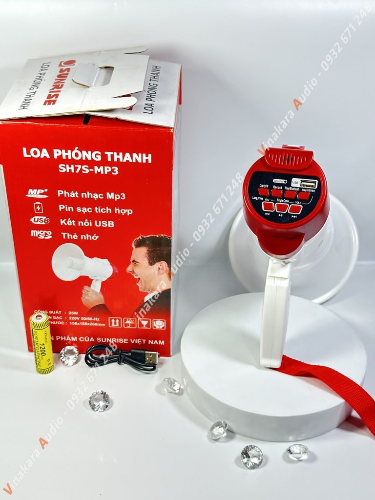 - Loa phóng thanh Sunrise SH7S - USB MP3 bản nâng cấp của sh7s đang được ưa chuộng hiện nay do tính di động tiện lợi phục vụ cho bán hàng, hướng dẫn viên du lịch, tổ chức sự kiện
