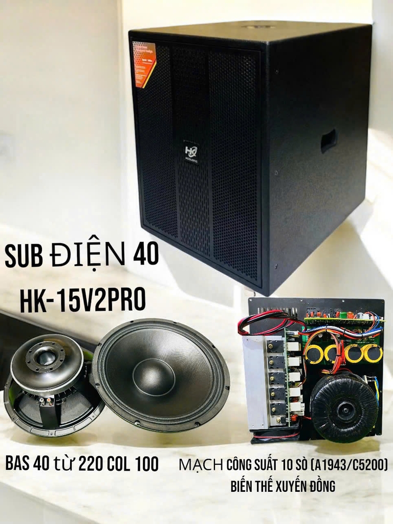 Loa sub điện HK-15V2PRO là giải pháp hoàn hảo để bổ sung dải trầm mạnh mẽ, uy lực cho hệ thống âm thanh karaoke gia đình, phòng hát kinh doanh hay sự kiện ngoài trời. Sản phẩm được thiết kế tối ưu với bass 4 tấc (40cm) từ lớn, coil dây đồng bền bỉ và mạch công suất chất lượng cao, mang đến âm bass chắc, sâu và uy lực.