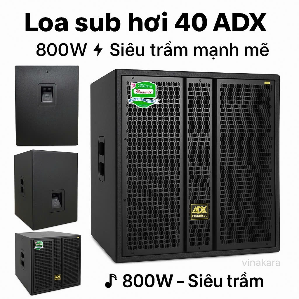 Loa Sub ADX 4 tấc là dòng loa siêu trầm chuyên dụng cho dàn karaoke, sân khấu và hội trường. Với củ bass 40cm, từ 220mm và coil 100mm, loa mang lại âm trầm cực kỳ uy lực, mạnh mẽ và chắc tiếng. Sản phẩm được thiết kế để tái tạo dải âm siêu trầm sâu, gọn, giúp không gian giải trí trở nên sống động và bùng nổ hơn.