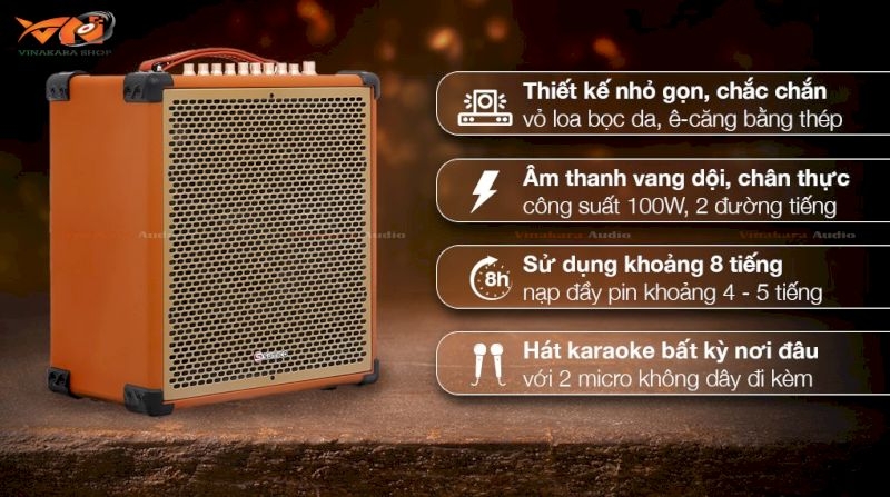 | Ngõ vào | Bluetooth 5.0, 1 AUX 3.5mm Input, 1 x6mm Input MIC, 1 x 6mm Input (Guitar), 1 x USB, 1 x HDMI, 1 x Optical |