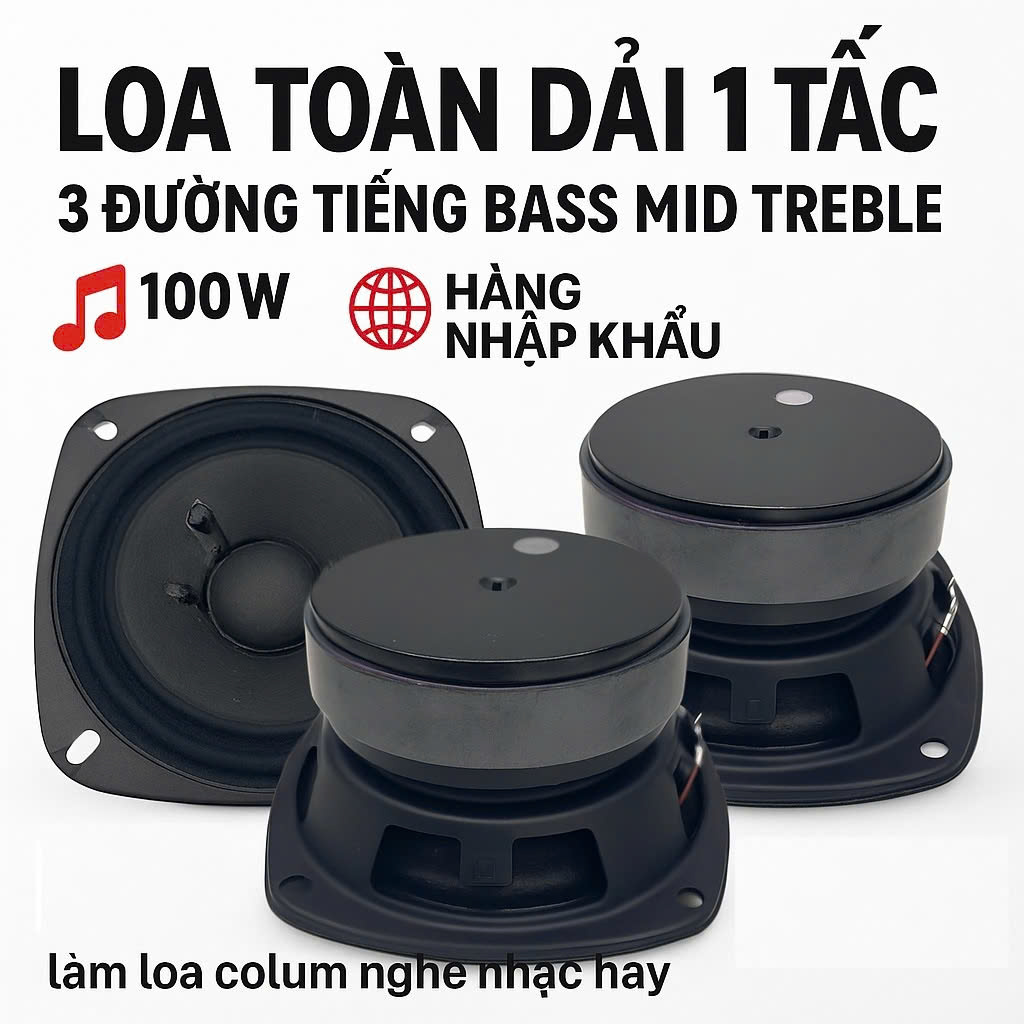 Loa toàn dải với kích thước 11.5cm là lựa chọn lý tưởng để làm loa colum (loa cột) hoặc phối ghép cho các dòng loa karaoke, loa nghe nhạc. Sản phẩm tích hợp đầy đủ 3 dải âm Bass – Mid – Treble trong cùng một loa, mang đến âm thanh cân bằng, rõ ràng và sống động. Với thiết kế gọn nhẹ, dễ lắp đặt, loa