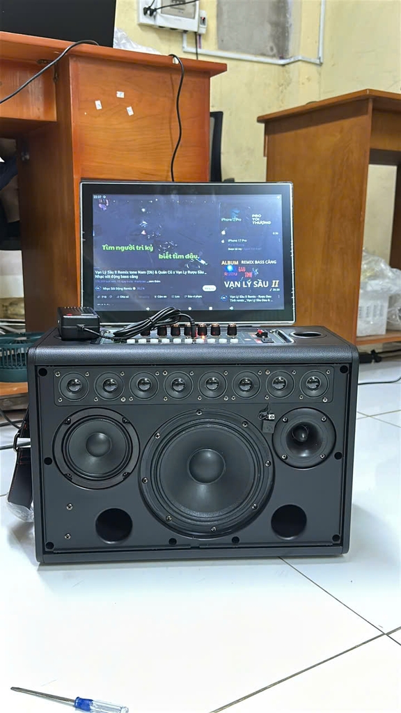-Cấu tạo: 01 loa Bass 20cm chính (02 loa Bass phụ) – 01 loa Trung 10cm – 01 loa Treble chính 8cm (06 loa Treble phụ 5cm)