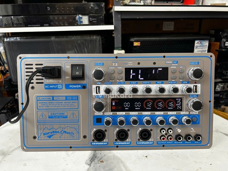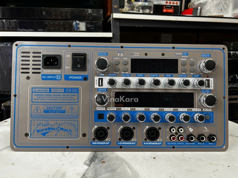 Kết nối: Bluetooth, USB, thẻ nhớ, Optical, AUX, Guitar, Mic 1, Mic 2