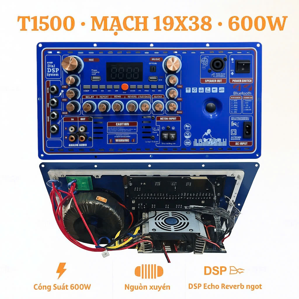 Mạch loa kéo 19x38 T1500 là dòng bo mạch công suất mạnh mẽ, được thiết kế chuyên dụng cho loa kéo công suất lớn. Với khả năng xử lý âm thanh vượt trội, tích hợp nhiều chế độ EQ và đèn LED nháy theo nhạc, sản phẩm mang lại trải nghiệm giải trí sống động và chuyên nghiệp. Đặc biệt, mạch T1500 còn hỗ trợ phần mềm điều chỉnh trên máy tính tương tự vang số, giúp người dùng dễ dàng cân chỉnh âm thanh theo sở thích.
