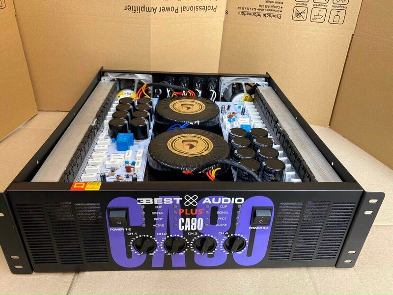 Cục đẩy công suất CA80 (Đ) với 4 kênh là một thiết bị mạnh mẽ, thường được sử dụng trong hệ thống âm thanh chuyên nghiệp như trong các sự kiện lớn, sân khấu, hệ thống PA, và nhiều ứng dụng âm thanh khác. Dưới đây là một số thông số kỹ thuật nổi bật của cục đẩy công suất này: