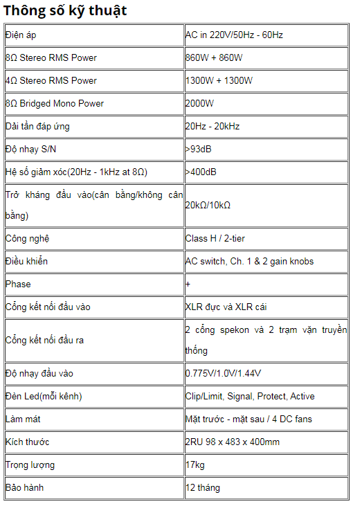 MAIN KORAH KA-2860 2 KÊNH được sử dụng đánh cho 2 cặp loa full 3 tấc hoặc 4 tấc với công suất cực khỏe lên đến 1200W.