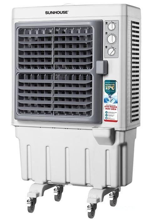 Máy làm mát Sunhouse có trang bị bánh xe tiện cho việc di chuyển. Cửa ra gió có đường kính lớn cho lưu lượng gió nhiều hơn. Động cơ bằng đồng nguyên chất siêu bền bỉ, có chức năng tạo ion âm lọc sạch không khí giúp bầu không khí trong lành và tiết kiệm chi phí cho gia đình bạn vì không phải mua thêm máy lọc không khí gia đình nữa.