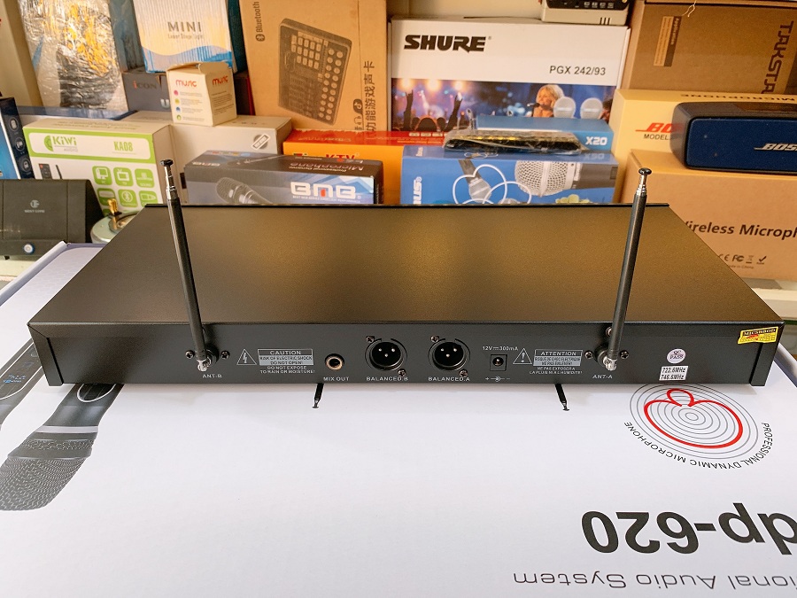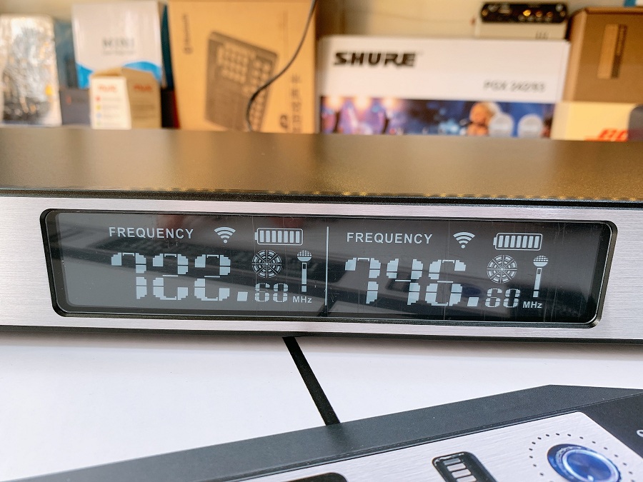- Hộp thu tín hiệu ( Receiver) có thiết kế đẹp mắt chuyên nghiệp, volume control cho từng micro điều chỉnh tiện lợi, LCD hiện thị tần số và tín hiệu sóng AF/RF