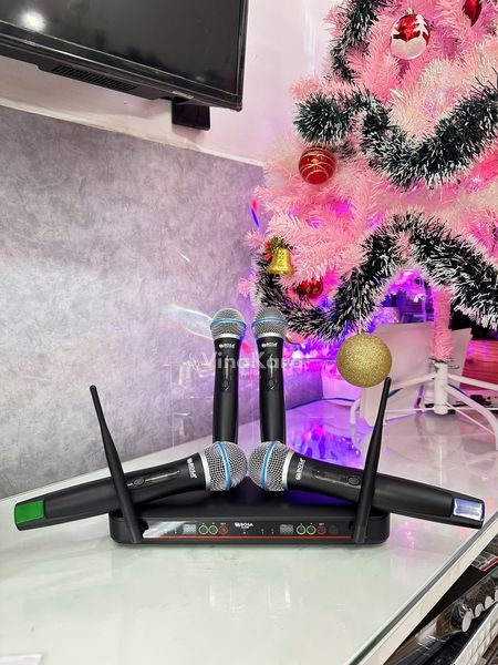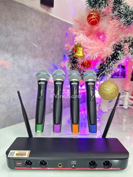 Mặt trước có 4 màn hình LED LCD hiển thị tần số và các thông số khác của micro không dây tạo nên sự bắt mắt, trên tay micro không dây cũng có màn hình LED để hiện thì tần số và báo pin rất tiện lợi.