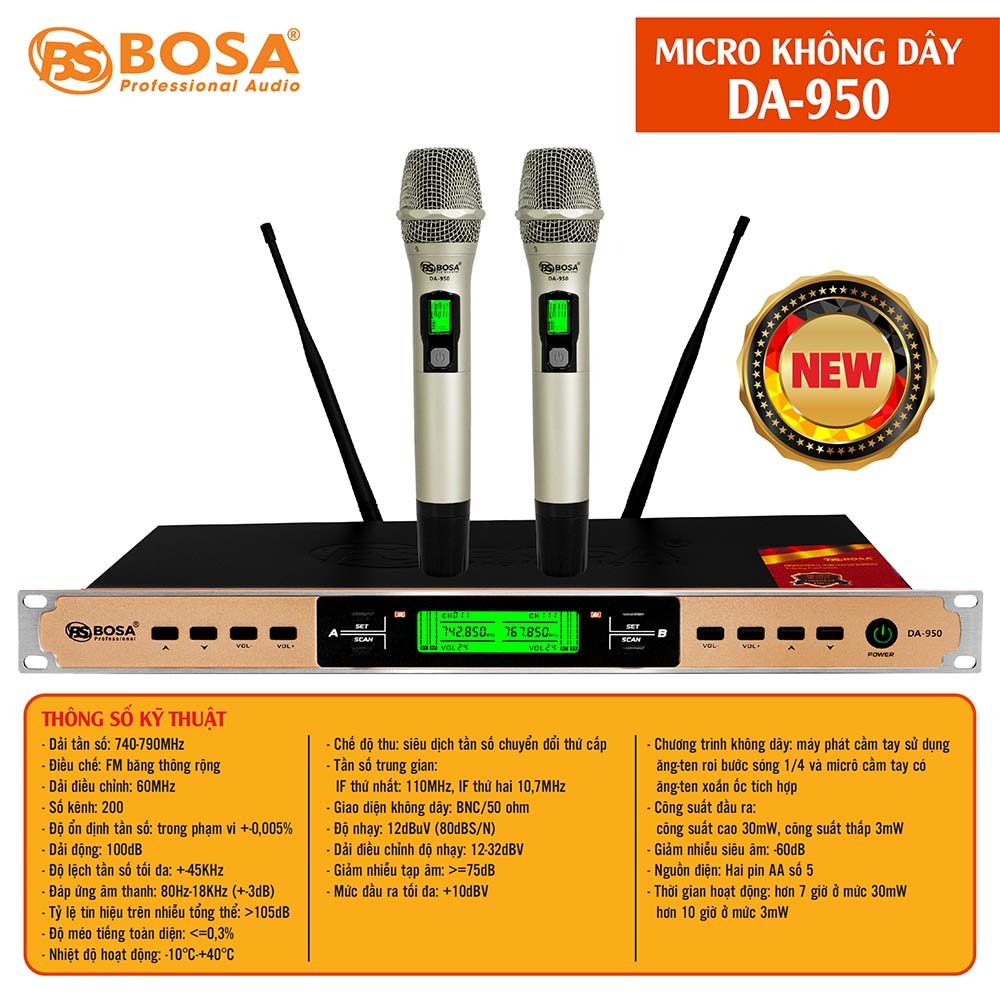 Bosa DA-950 không chỉ là một micro, mà còn là giải pháp âm thanh chuyên nghiệp, đáng tin cậy với chất lượng âm thanh vượt trội và độ bền cao.