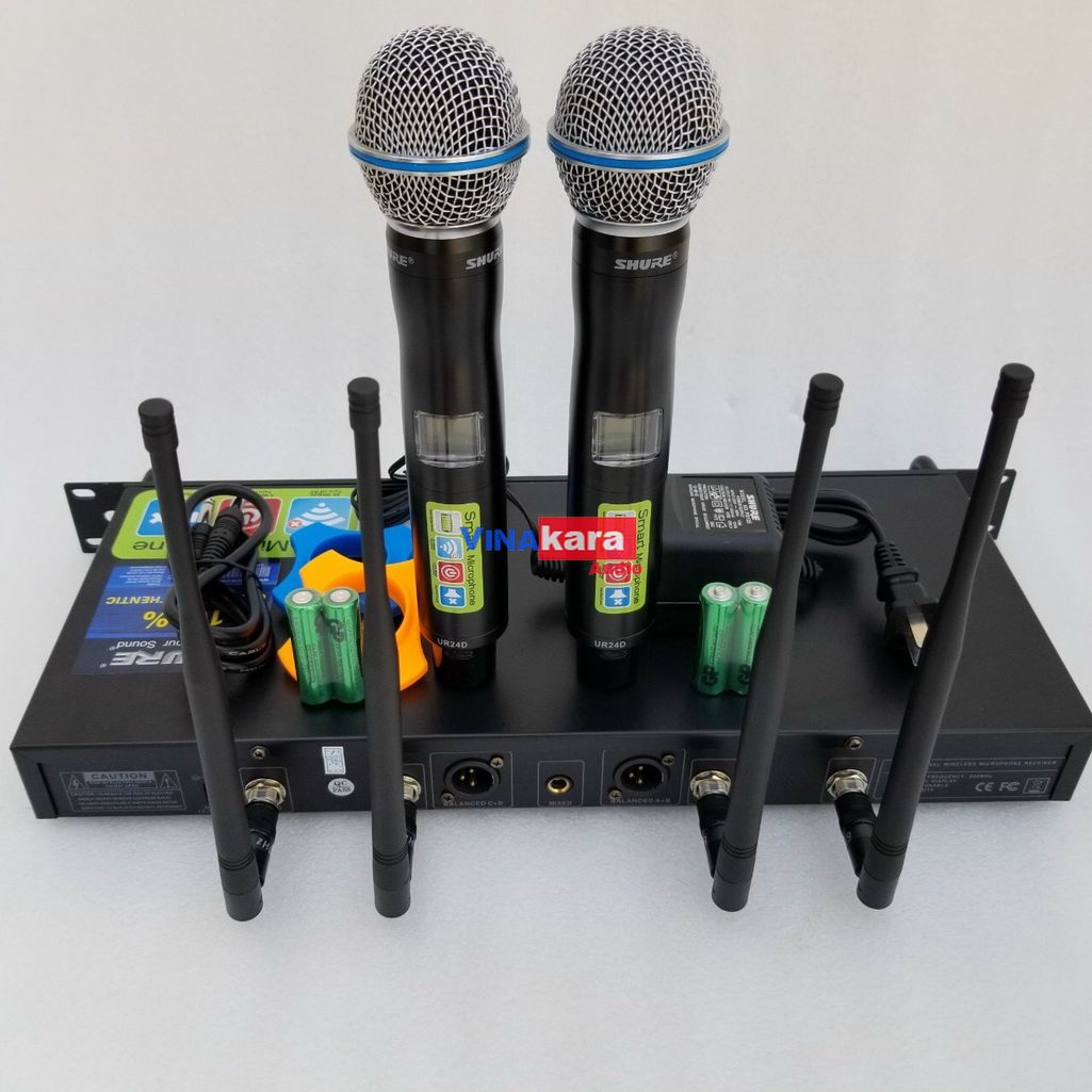 Shure UR24D được sản xuất từ công nghệ Mỹ, cho chất âm rất ấm và thanh. Micro cầm tay được trang bị thêm bộ công nghệ lọc tiếng, giảm tối đa các tần số ngoài. Nhờ vậy, Micro phát huy sức hút âm thanh mạnh mà không sợ hú, lẫn tạp âm. Giúp người hát, hội thảo, dẫn chương trình …dễ dùng, nhẹ nhàng.