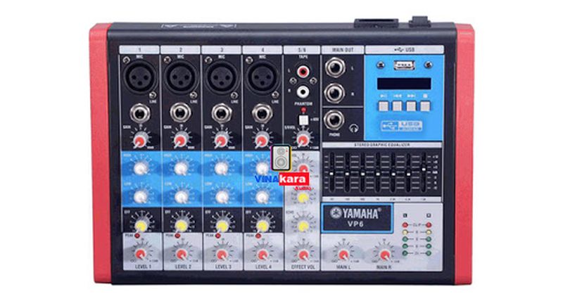 Mixer Yamaha VP6 ( 4 line ) có cổng phát USB, ngõ ra tai nghe, ngõ ra AUX