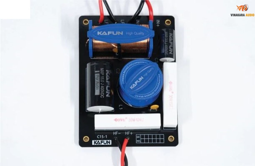 Phân tần KAFUN C15-01 là linh kiện chuyên dụng dành cho loa full bass 40cm (15 inch), giúp phân chia dải tần âm thanh chính xác giữa các loa thành phần, mang lại chất lượng âm thanh rõ ràng và cân bằng hơn.