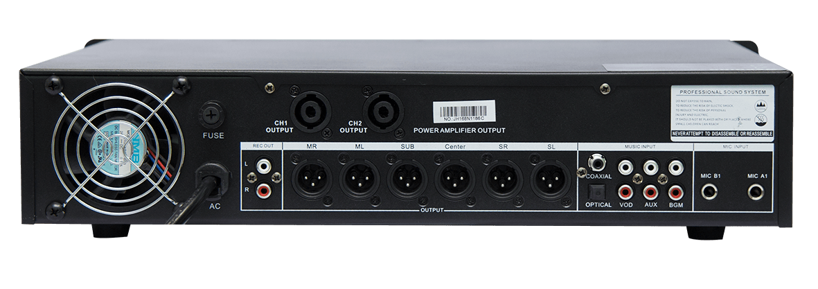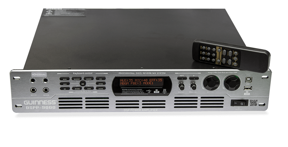 Ngõ vào nhạc có 15 cần điều chỉnh trong giới hạn từ -24dB đến +24dB (tần số 20Hz-20KHz) xử lý nhạc nền.