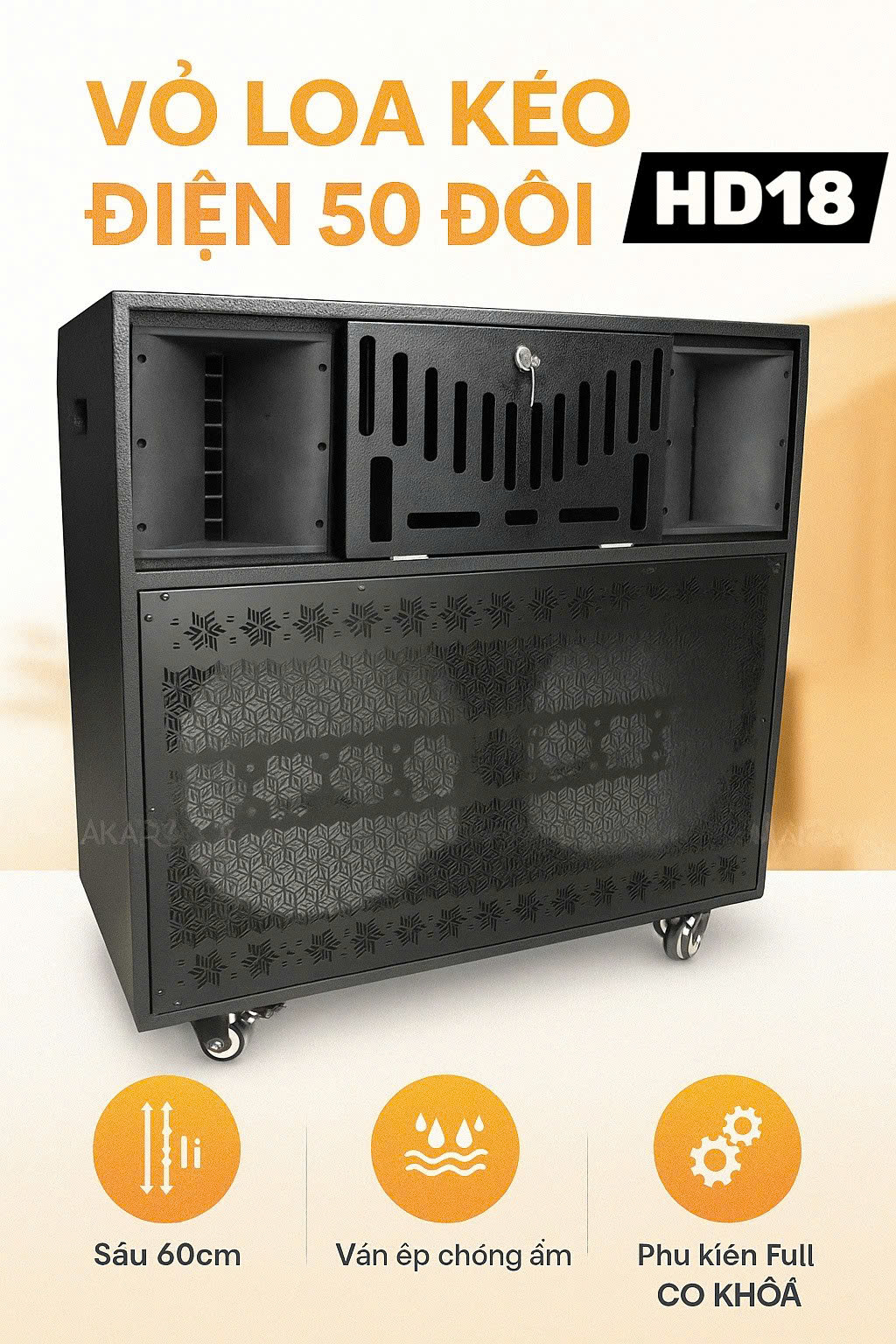 Với ván ép cao cấp và thiết kế đầy đủ phụ kiện, vỏ thùng loa kéo đi 50 đôi (5 tấc đôi) đáp ứng đầy đủ nhu cầu của bạn về âm thanh và di động. Bạn không cần phải lo lắng về việc sắp xếp hệ thống âm thanh phức tạp hay di chuyển nhiều thiết bị, vì vỏ thùng loa kéo điện này đã tích hợp tất cả trong một.